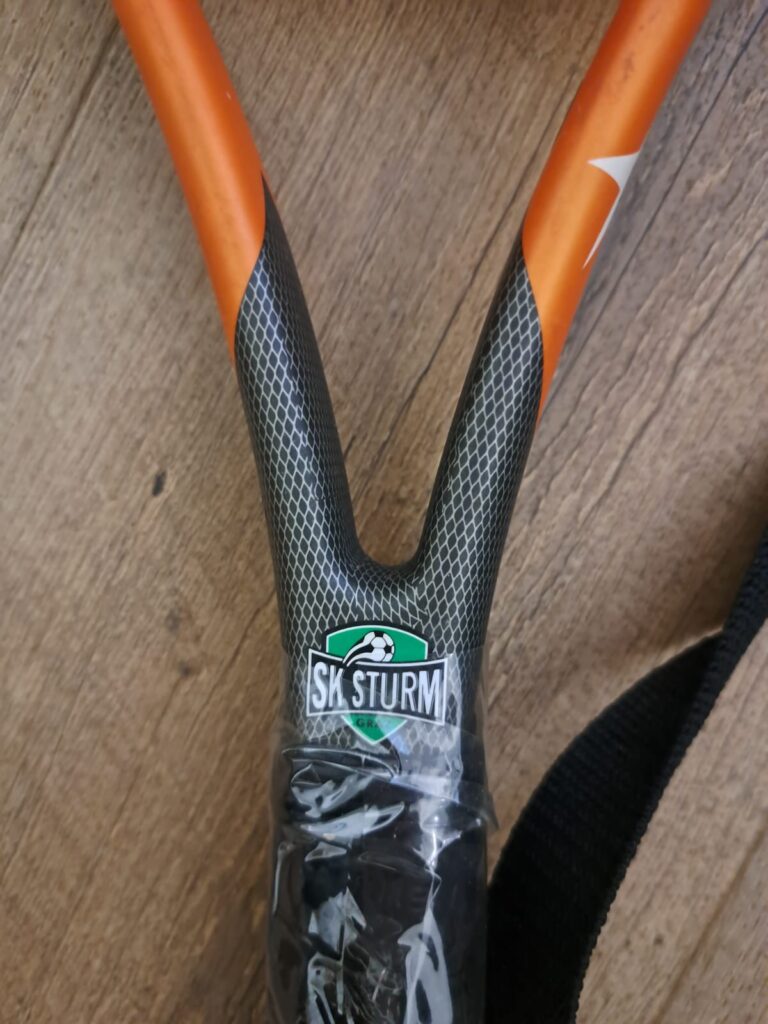 Willkommen zurück in den 90ern zu einer Zeit voller Titel, Ivica Osim und Mario Haas. Zu einer Zeit eines verqueren Sturmlogos und außergewöhnlicher Sturmutensilien. So wurden uns drei SK Sturm-Tennischläger gesponsert, wohl aus dem Ende der 90er-Jahre. Alle drei Tennisschläger sind ungebraucht, zwei davon sind noch in ihrer originalen Hülle erhalten. Wir versteigern alle drei einzeln. Vielen Dank an die Black Soul für diese Spende!