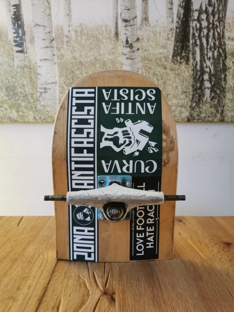 Weiter geht es mit Martins kreativen Ideen! Bei diesem besonderen Unikat handelt es sich um… Lassen wir Martin Hirtenfellner doch einfach selbst sprechen: „Ein altes Skateboard mit Sturm- bzw. Bremen-Pickerln, umfunktioniert als kleines ‚Wandregal‘ – ideal für WLAN-Router und zum Aufhängen von Blumentöpfen. Dazu fällt mir echt nicht mehr ein und ich würde es verstehen, wenn ihr damit nix anfangen könnt.“ Doch können wir! Vielen Dank!