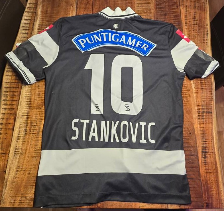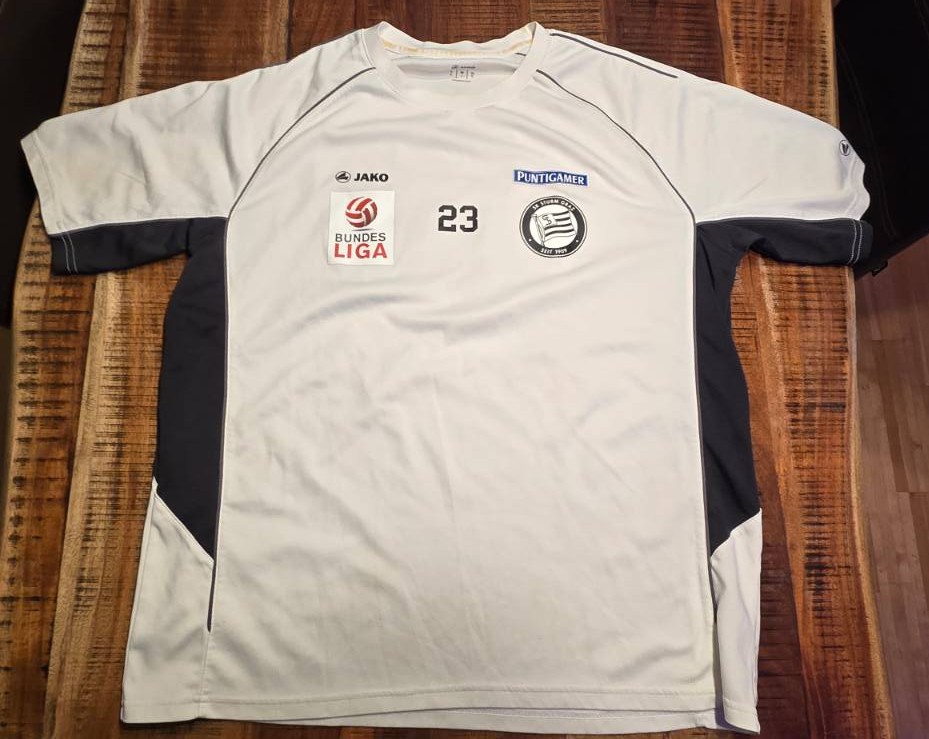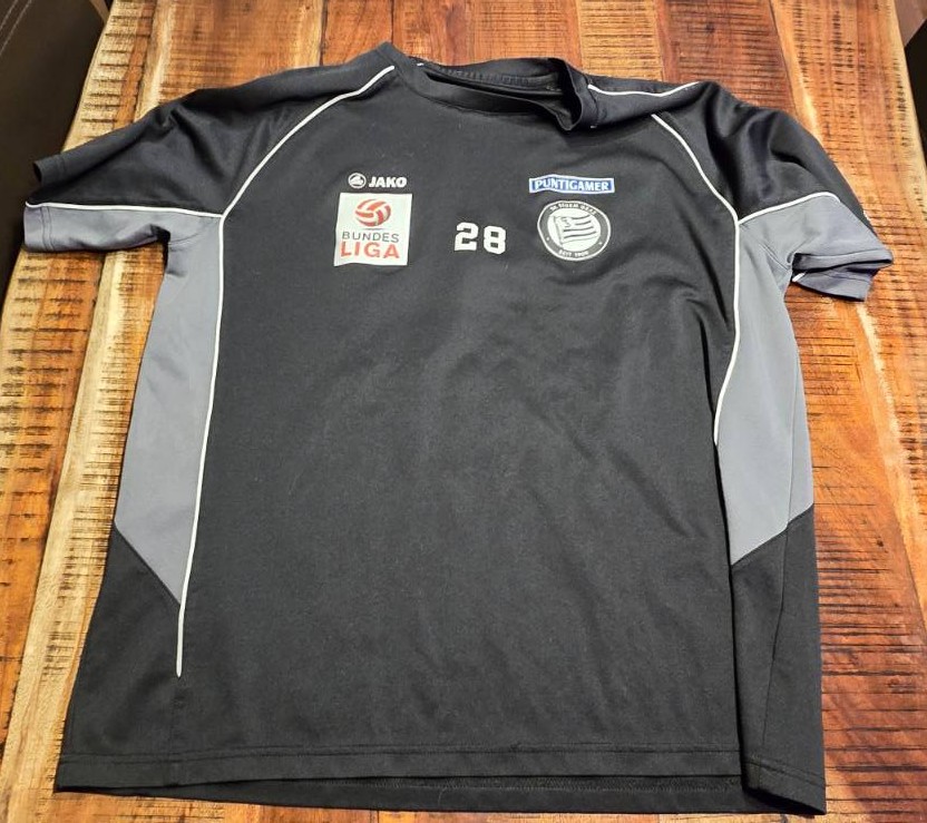 Ein äußerst netter Trikotsammler hat uns eine ganze Reihe getragener Trikots und Trainingsshirts zukommen lassen. Bei den matchworn Trikots handelt es sich um Dressen der ehemaligen Sturmspieler Marco Djuricin (Größe XL) und Marko Stankovic (Größe XL). Bei den authentischen Trainings- oder Aufwärmtrikots handelt es sich um zwei Exemplare unseres ehemaligen Spielers und Trainers Darko Milanic (beide Größe XL) sowie um Trikots von Lukas Spendlhofer (Größe XL) und Nikola Vujadinovic (Größe XL). Außerdem haben wir noch ein weiteres Trainingsshirt mit der Nummer 28 (Größe L), das wir nicht eindeutig zuordnen können. Wir vermuten aber, es gehörte einst Daniel Beichler. Falls jemand weiß, ob wir damit richtig liegen, schreibt uns bitte gern an kontakt@schwoazehelfen.at!
